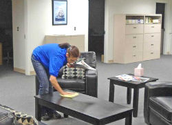 When we are in your office, we are likely to remove fingerprints, clean and wipe conference tables, wipe down desktops, dust lamps and telephones, wipe down office equipment and pictures, mop floors, clean and disinfect toilets and sinks, wipe down doors and door knobs.